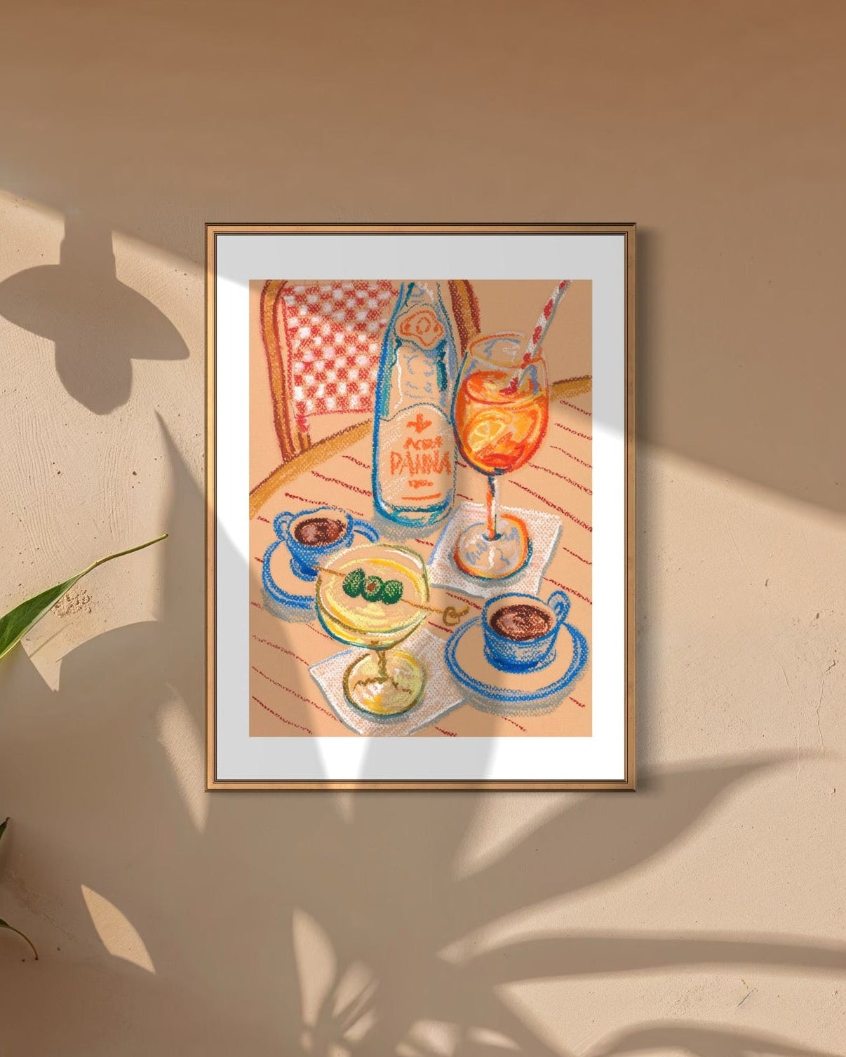 The Happy Table series is about those moments with your favorite people — the laugh that hurts your abs, the bite that shifts your existence, and a round (or two or three) of drinks that turn into ‘you had to be there’ stories. I hope this art makes you nostalgic about your own memories at the table - wherever that may be!