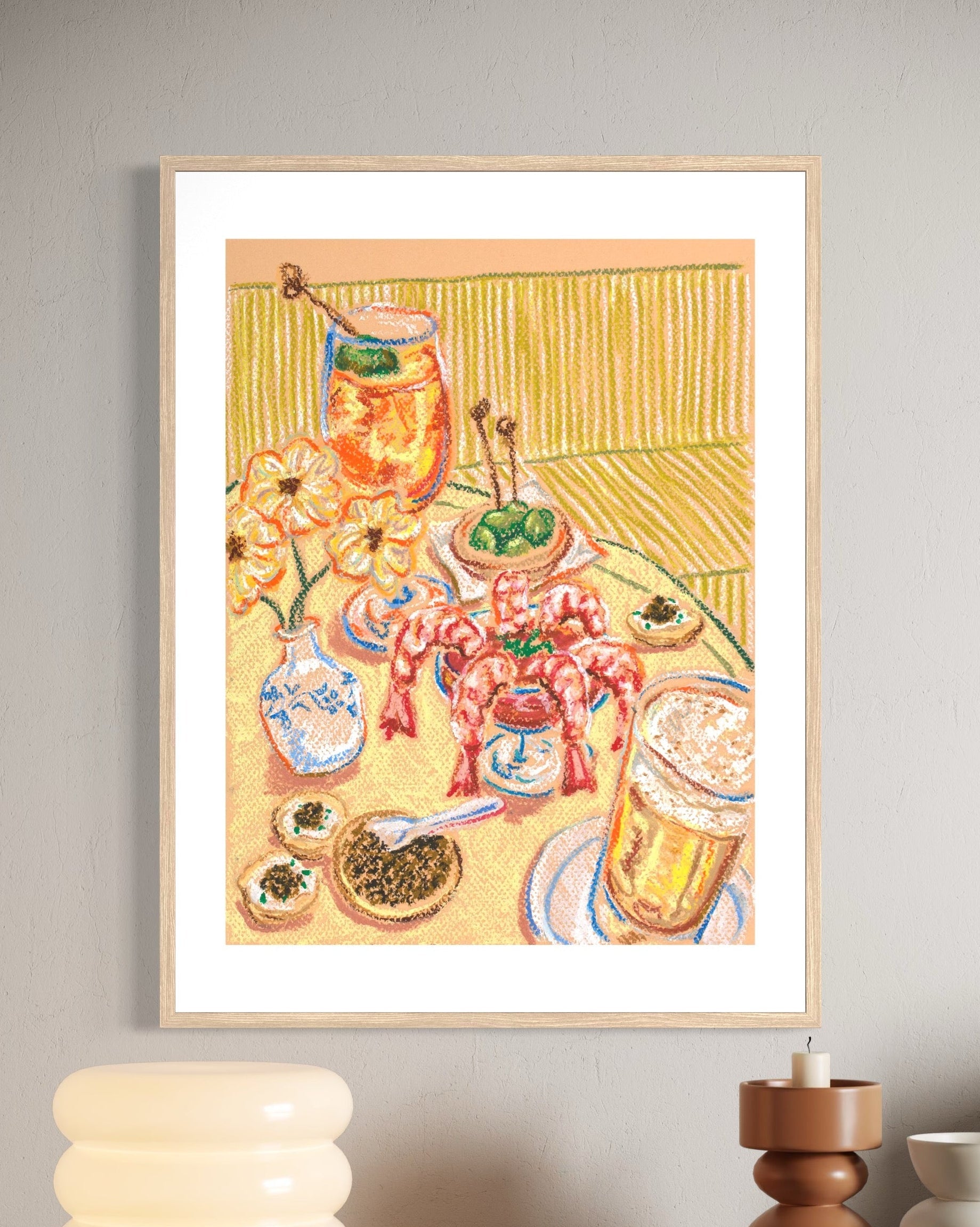 The Happy Table series is about those moments with your favorite people — the laugh that hurts your abs, the bite that shifts your existence, and a round (or two or three) of drinks that turn into ‘you had to be there’ stories. I hope this art makes you nostalgic about your own memories at the table - wherever that may be!
